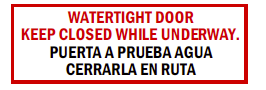 SIGN: Watertight Door - Keep Closed While Underway. Puerta A Prueba Agua - Cerrarla en Ruta.